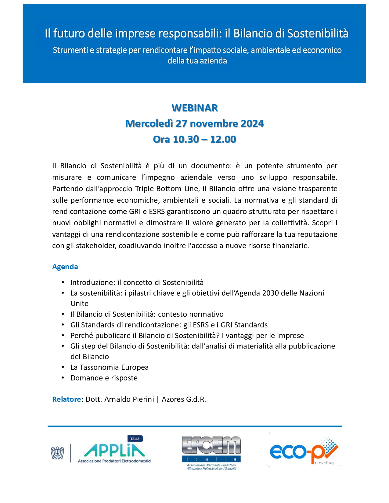 Formazione APPLiA Italia - “Il futuro delle imprese responsabili: il Bilancio di Sostenibilità